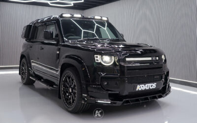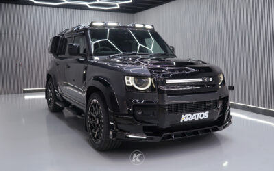 Offered in stunning Santorini Black with an added ceramic protective finish, this 2023 Land Rover Defender 110 X-Dynamic D250 SE MHEV is a top-spec SE model enhanced by the Kratos Automotive ‘Mávros Edition’ body kit – a £17,000 upgrade that elevates this already iconic vehicle to an entirely new level of style and presence.