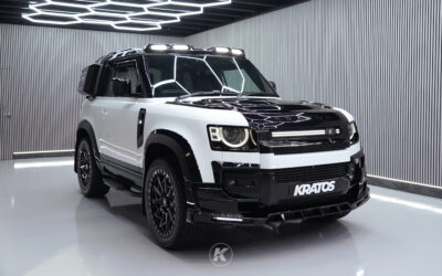 Offered in stunning Fuji White with an added ceramic protective finish, this 2025 Land Rover Defender 90 X-Dynamic D250 HSE MHEV Cold Climate Convenience Pack – Black Exterior Pack is a top-spec HSE model enhanced by the Kratos Automotive ‘Mávros Edition’ body kit – a £17,000 upgrade that elevates this already iconic vehicle to an entirely new level of style and presence.