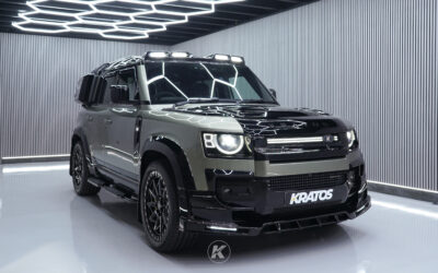 Offered in stunning Pangea Green with an added ceramic protective finish, this 2023 Land Rover Defender 110 X-Dynamic D300 HSE MHEV is a top-spec HSE model enhanced by the Kratos Automotive ‘Mávros Edition’ body kit – a £17,000 upgrade that elevates this already iconic vehicle to an entirely new level of style and presence.